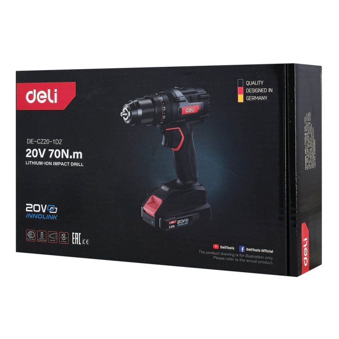 DELI κρουστικό δραπανοκατσάβιδο μπαταρίας DE-CZ20-1D2, Brushless, 20V, 2x 2Ah, 70N.m