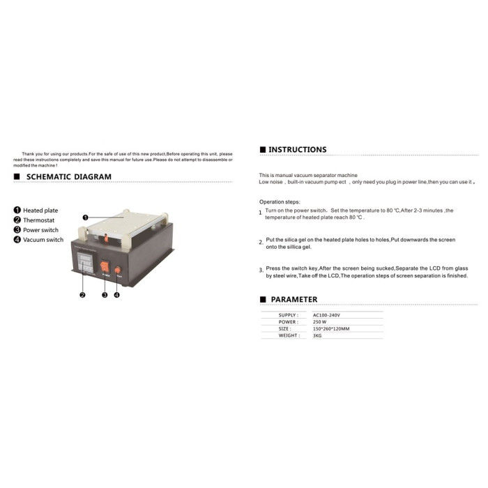 Το BST-B988 είναι ένα μηχάνημα για την αφαίρεση LCD οθονών για κινητά τηλέφωνα. To BST-B988 υιοθετεί την τεχνική του κενού αέρα,μέσω της αντλίας που έχει, κάτι το οποίο το κάνει ποιο εύκολο στην χρήση του από τις απλές συσκευές του εμπορίου καθότι δεν χρησιμοποιεί σφιγκτήρες για την σταθεροποίηση της οθόνης και την αφαίρεση της.