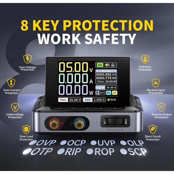 Υποστηρίζει PC, QC, και DC εισόδους με προγραμματιζόμενες εξόδους και 6 preset voltage/current ρυθμίσεις.