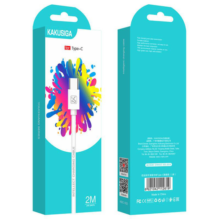 KAKUSIGA καλώδιο USB-C σε USB KSC-332, 2.4A, 480Mbps, 2m, λευκό