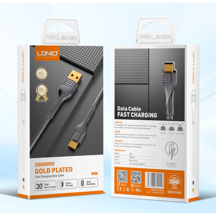 LDNIO καλώδιο USB-C σε USB LS652, 30W, 2m, γκρι