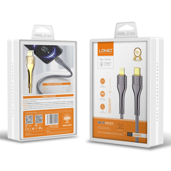 LDNIO καλώδιο Lightning σε USB-C LC651I, 30W, 1m, χρυσό