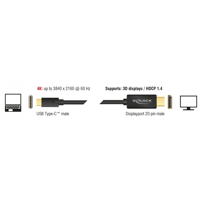 DELOCK καλώδιο USB-C σε DisplayPort 85255, DP Alt Mode, 4K, 1m, μαύρο