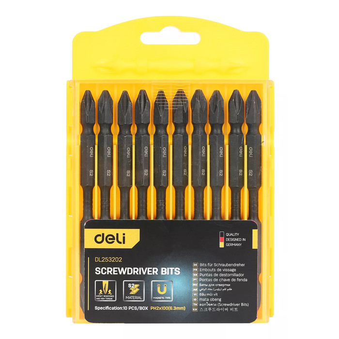 DELI μύτες κατσαβιδιού DL253202 για δράπανο, σταυρωτές, PH2x100mm, 10τμχ