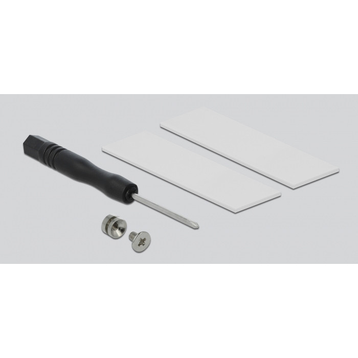 This adapter by Delock enables the connection of an M.2 SSD in 2280, 2260, 2242 and 2230 format. The data transmission occurs directly via the PCI Express slot.