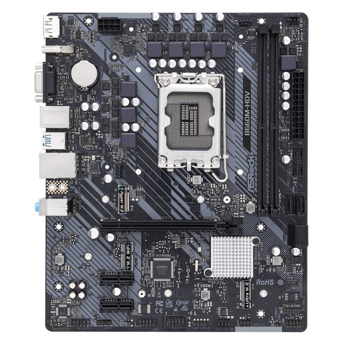 Η B660M-HDV της Asrock είναι μια αξιόπιστη μητρική κάρτα, ιδανική για χρήση τόσο σε home PC όσο και σε bussiness PC. Κατασκευάζεται από αξιόπιστα components και εξοπλίζεται με όλες τις σύγχρονες τεχνολογίες που προσφέρουν αυξημένες ταχύτητες και σταθερή απόδοση. Υποστηρίζει επεξεργαστές οι οποίοι είναι συμβατοί με το socket s1700 και βασίζεται στο chipset B660 της Intel.