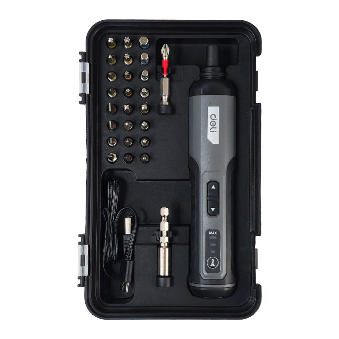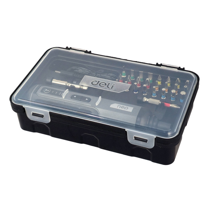 DELI σετ κατσαβίδι μπαταρίας με μύτες DC161, LED φακός, 2000mAh