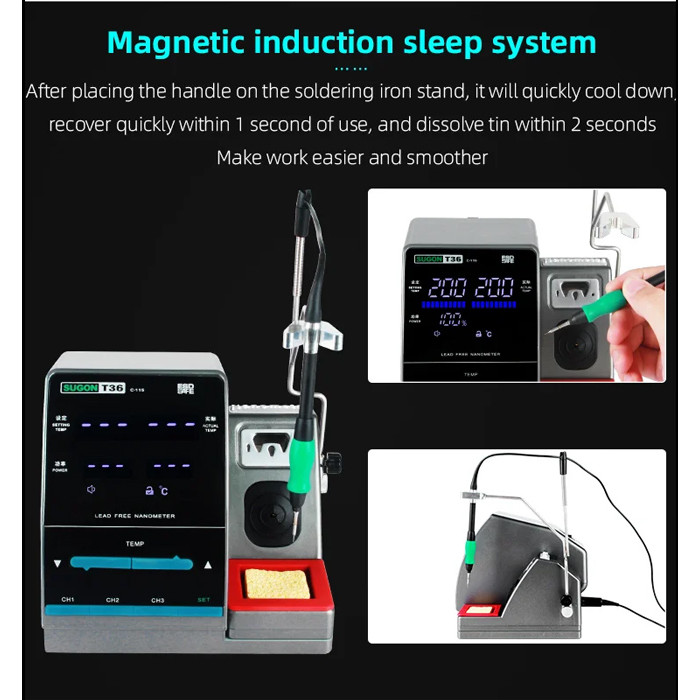 SUGON ψηφιακός σταθμός συγκόλλησης T36 με κολλητήρι, 120W, 200-450 °C