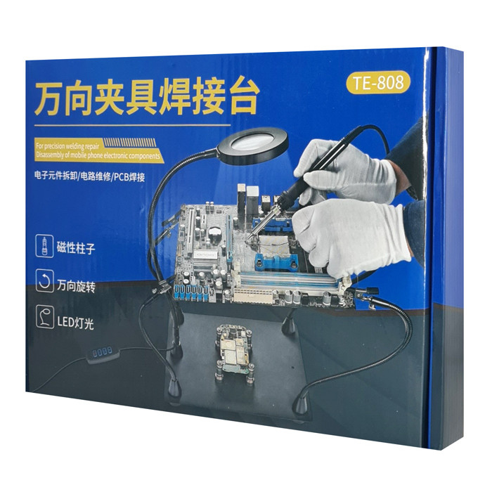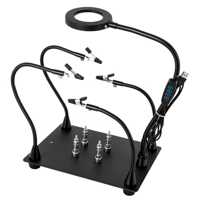 KAISI βάση πλακέτας PCB TE-808 με μεγεθυντικό φακό & βραχίονες, μαύρη