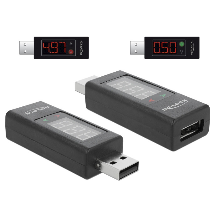 DELOCK αντάπτορας USB 65569 με οθόνη ένδειξης V/A, έως 5V/4A, μαύρος