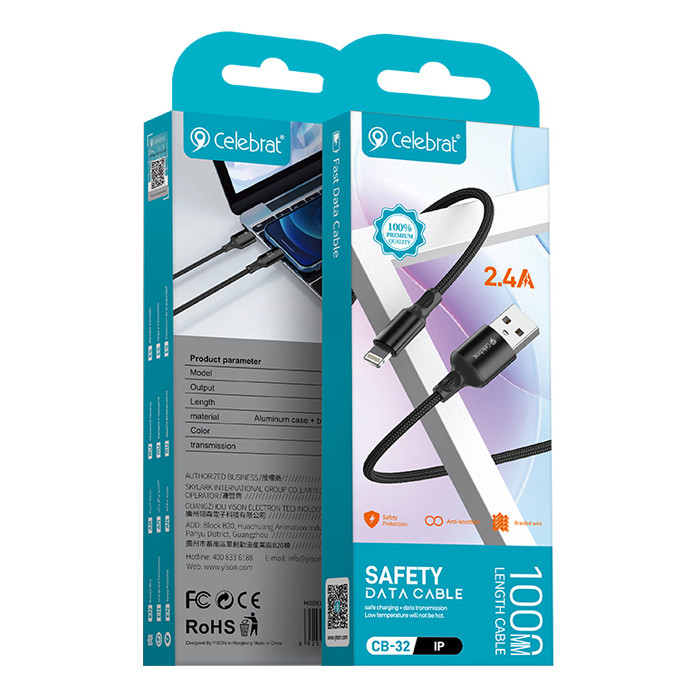 CELEBRAT καλώδιο Lightning σε USB CB-32, 2.4A, 1m, μαύρο