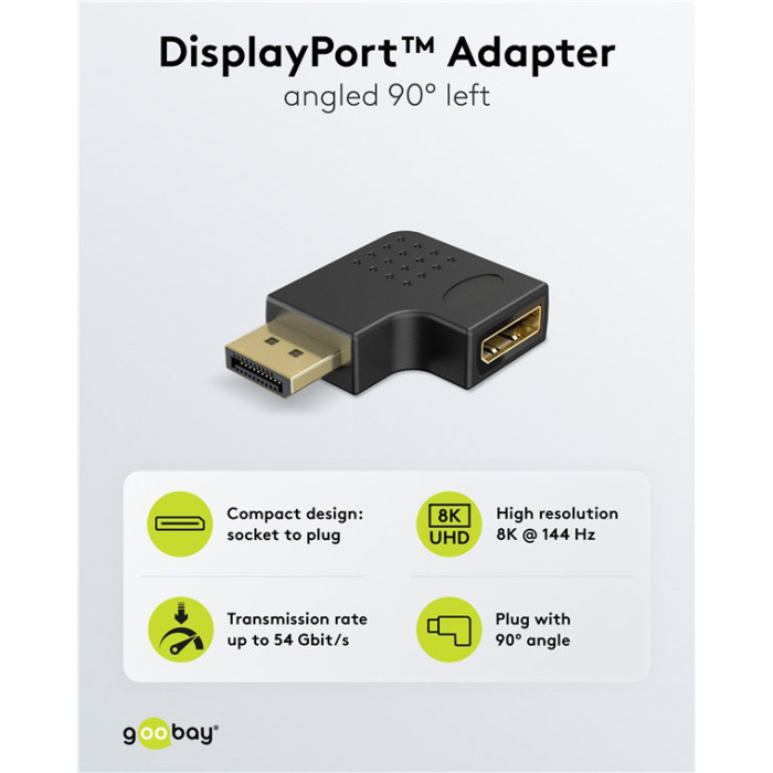 GOOBAY αντάπτορας DisplayPort 77131, 8K/144Hz, γωνιακός, μαύρος