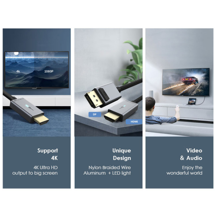 CABLETIME καλώδιο DisplayPort σε HDMI CT-P02G4K, 4K, 1.8m, μαύρο