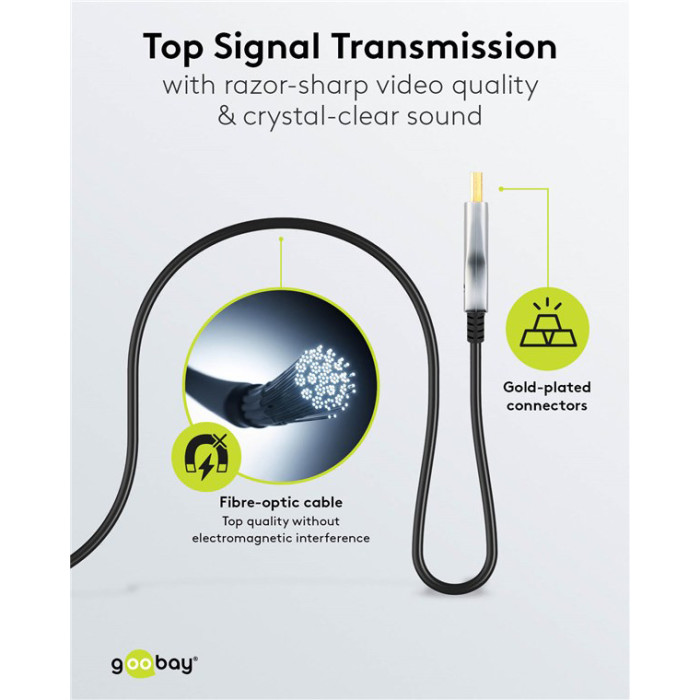 Τα καλώδια της Goobay κατασκευάζονται από ποιοτικά υλικά, με τις υψηλότερες τεχνικές προδιαγραφές, προσφέροντας αξιόπιστη λειτουργία υψηλής απόδοσης, με αντοχή στον χρόνο.