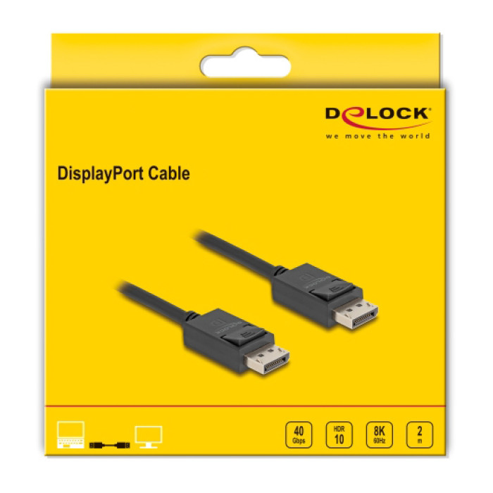 DELOCK καλώδιο DisplayPort 2.1 80493 8K/60Hz 4K/120Hz 40 Gbps, 2m, μαύρο