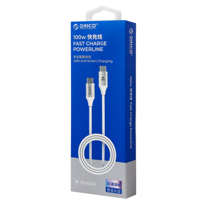 Καλώδιο φόρτισης και μεταφοράς δεδομένων USB-C σε USB-C της ORICO. Υποστηρίζει φόρτιση με απόδοση έως 100W και μεταφορά δεδομένων με ταχύτητα έως 480Mbps.
