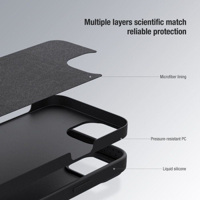 Η θήκη της σειράς CamShield Silky Silicone της Nillkin χαρακτηρίζεται από την ενισχυμένη προστασία που προσφέρει το ανθεκτικό υλικό κατασκευής της και την έξτρα προστασία των καμερών και της ιδιωτικότητας σας, χάρη στο συρόμενο καπάκι της. Η επιφάνεια της είναι αντιολισθητική με απαλή υφή, έχει ενισχυμένα άκρα, δεν χαράσσεται και δεν κάνει δαχτυλιές.