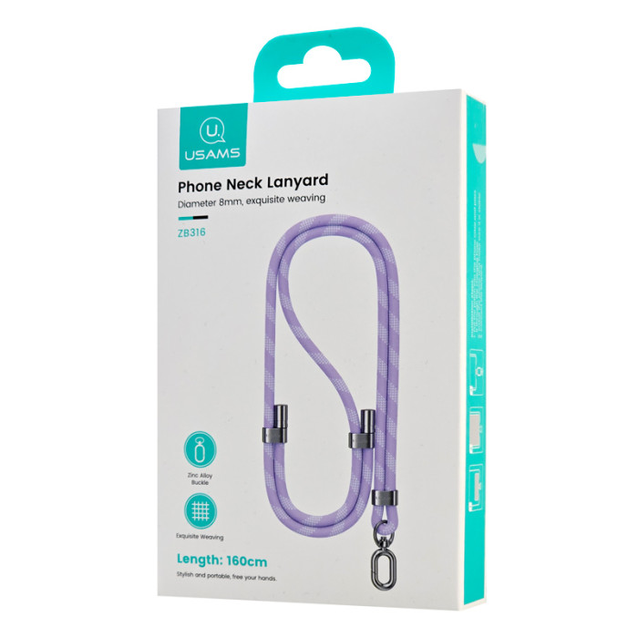 USAMS κορδόνι λαιμού για κινητά ZB316, 160cm, universal, μωβ