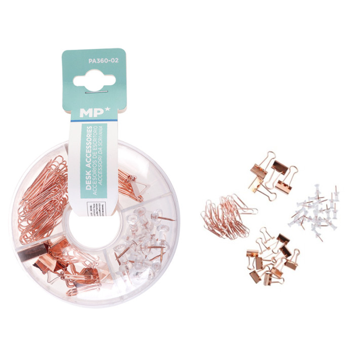 • MP σετ γραφείου PA360-02 με συνδετήρες, κλιπ & πινέζες, ροζ χρυσό