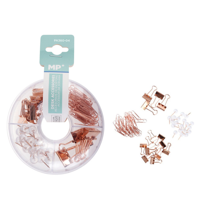 MP σετ γραφείου PA360-04 με συνδετήρες, κλιπ & πινέζες, ροζ χρυσό