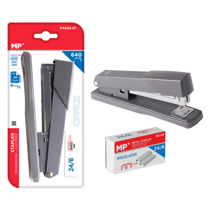 MP συρραπτικό με ανταλλακτικά PA642-01, 24-8/24-6/26-6, 25 φύλλα, μαύρο