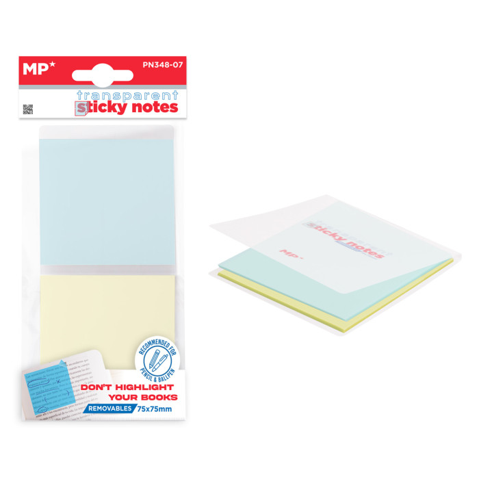MP αυτοκόλλητα χαρτάκια σημειώσεων PN348-07, διάφανα, 75x75mm, 60τμχ