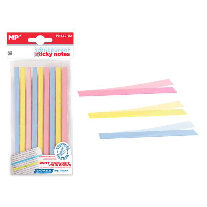 MP αυτοκόλλητα χαρτάκια σημειώσεων PN352-02, διάφανα, 140x6mm, 225τμχ