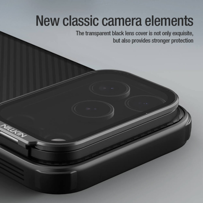 Η θήκη της σειράς CamShield Prop της Nillkin χαρακτηρίζεται από την ενισχυμένη προστασία που προσφέρει, το σκληρό υλικό κατασκευής της με την ανάγλυφη επιφάνεια, αλλά και την έξτρα προστασία των καμερών και της ιδιωτικότητας σας, χάρη στο ανοιγόμενο μεταλλικό καπάκι καμερών, το οποίο μπορεί να χρησιμοποιηθεί και ως stand.
