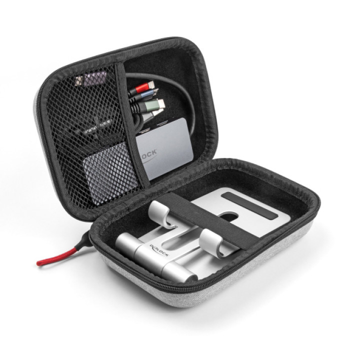 Αυτή η πρακτική θήκη οργάνωσης της Delock όχι μόνο εντυπωσιάζει με τον μοντέρνο σχεδιασμό της αλλά επίσης προσφέρει αρκετό χώρο για την αποθήκευση διαφόρων αξεσουάρ όπως καλώδια, power bank, σκληρούς δίσκους, docking station, ακουστικά και άλλα.