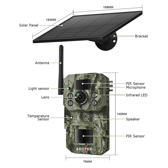 SECTEC smart ηλιακή κάμερα κυνηγού ST-HC809, 3MP, 4G, PIR, SD, IP66