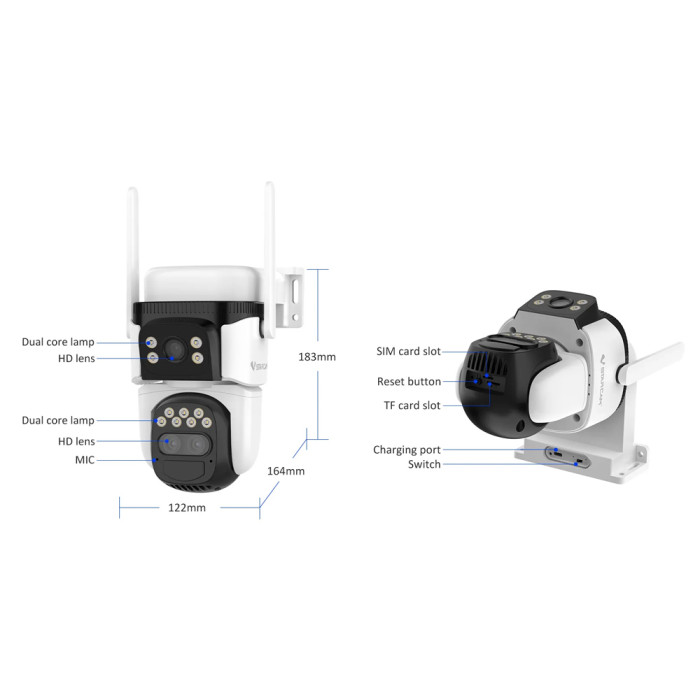 VSTARCAM smart ηλιακή κάμερα BG621TR, triple lens, 3MP, 4G, SD, PTZ, IP66
