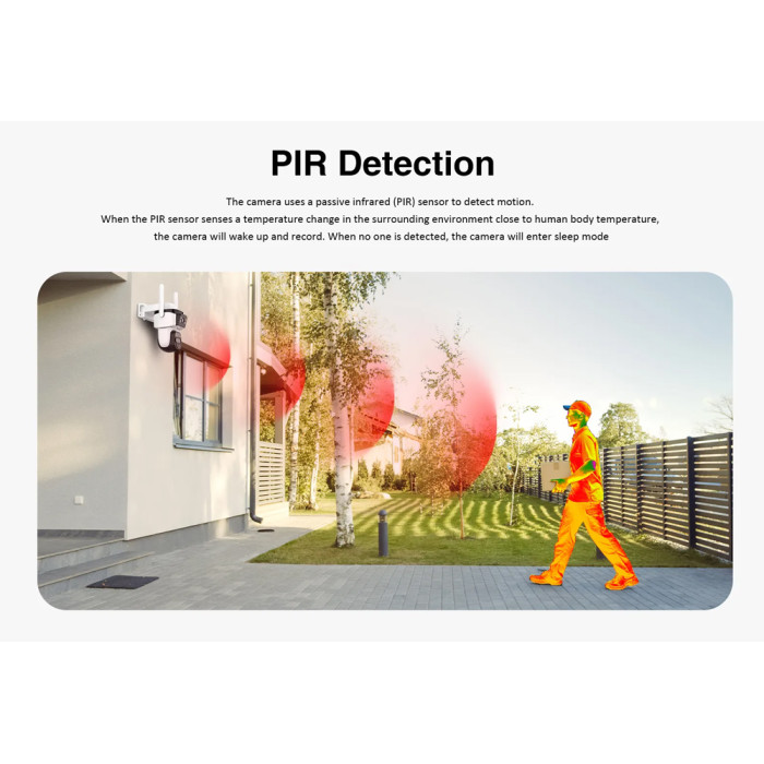 Μπορεί να ανιχνεύσει την ανθρώπινη σιλουέτα και κίνηση, στέλνοντας ειδοποιήσεις στο smartphone σας κάθε φορά που ανιχνεύεται κίνηση αλλά και να ενεργοποιήσει ηχητικό και οπτικό (με φως) συναγερμό.