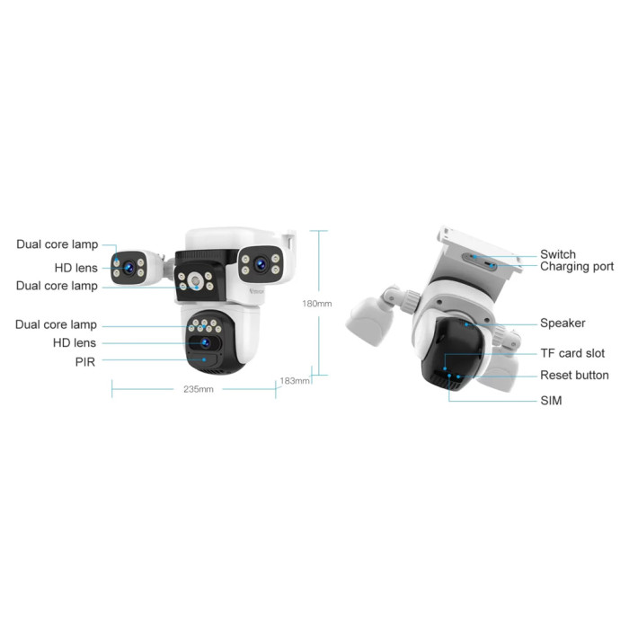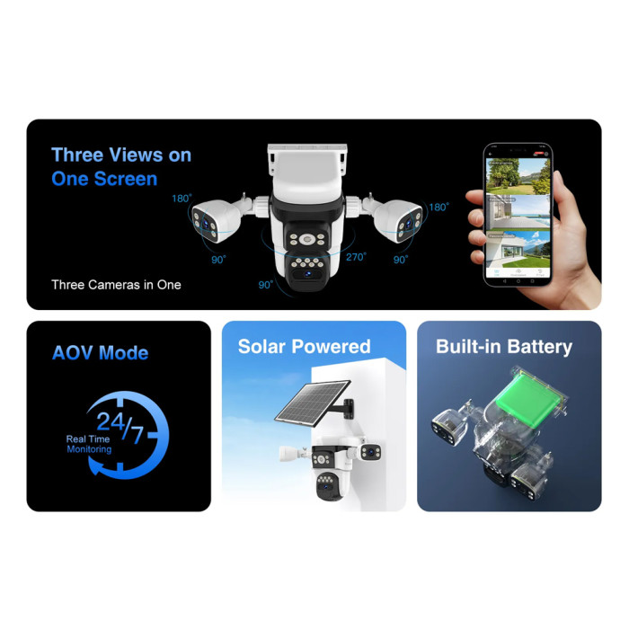VSTARCAM smart ηλιακή κάμερα BG621SR, triple lens, 2MP, 4G, SD, PTZ, IP66