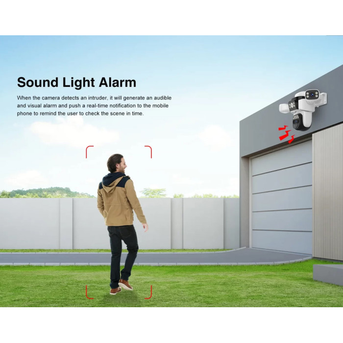 Μπορεί να ανιχνεύσει την ανθρώπινη σιλουέτα και κίνηση, στέλνοντας ειδοποιήσεις στο smartphone σας κάθε φορά που ανιχνεύεται κίνηση αλλά και να ενεργοποιήσει ηχητικό και οπτικό (με φως) συναγερμό.