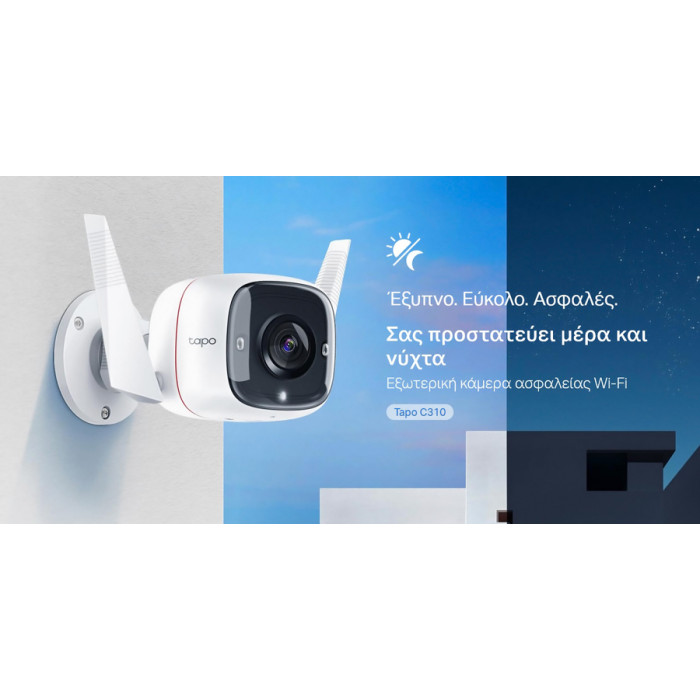 Η Wi-Fi εξωτερική κάμερα ασφαλείας TAPO-C310 της TP-LINK, καταγράφει κάθε κίνηση σε καθαρή, HD ανάλυση, ακόμη και κατά την διάρκεια της νύχτας. Υποστηρίζει την τεχνολογία Motion Detection και Notifications, με την οποία ανιχνεύει κάθε κίνηση και ειδοποιεί με μήνυμα. Εξοπλίζεται με ηχείο και μικρόφωνο, επιτρέποντας την αμφίδρομη επικοινωνία με τα άτομα που βρίσκονται στον χώρο και έχει λειτουργία εκφοβισμού ανεπιθύμητων επισκεπτών με φως και ήχο. Έχει τη δυνατότητα αποθήκευσης αρχείων έως 128GB, σε κάρτα SD (δεν συμπεριλαμβάνεται), που ισοδυναμεί με 384 ώρες (16 μέρες) καταγραφής. Ρυθμίζεται εύκολα και ελέγχεται μέσω της δωρεάν εφαρμογής Tapo.