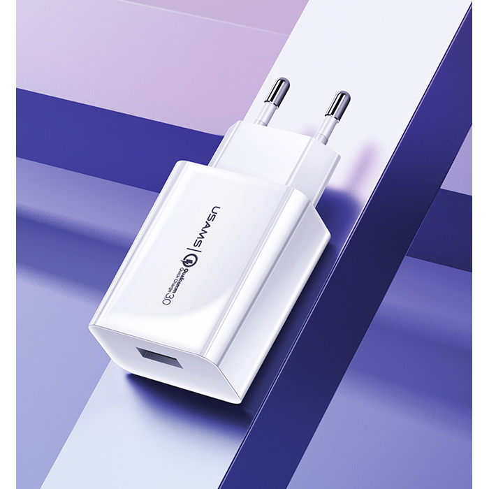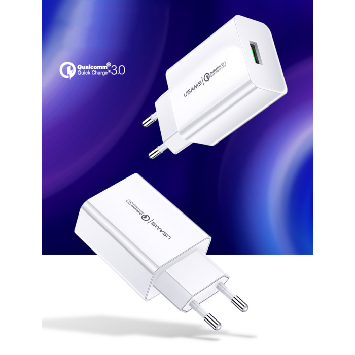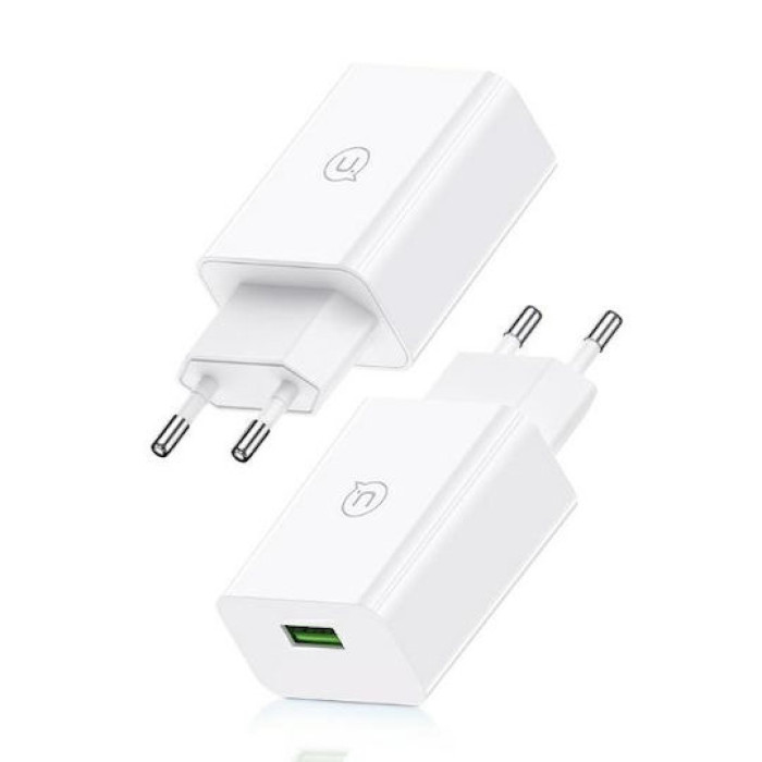 USAMS φορτιστής τοίχου T22, 1x USB, QC3.0 18W 3A, λευκός