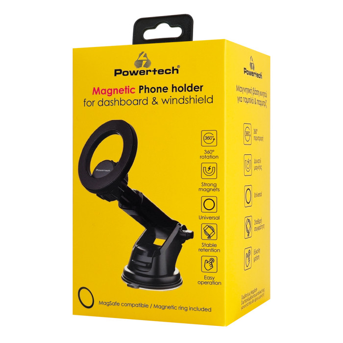 POWERTECH βάση smartphone αυτοκινήτου PT-1550 για ταμπλό, μαγνητική, μαύρη