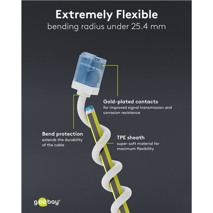 Τα καλώδια τις Goobay κατασκευάζονται με τις καλύτερες τεχνικές προδιαγραφές και τα καλύτερα υλικά κατασκευής για μεγάλη αντοχή, προσφέροντας αξιοπιστία και υψηλής ποιότητας απόδοση ώστε να εξασφαλίζουν την απροβλημάτιστη χρήση τους.