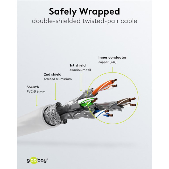 GOOBAY καλώδιο δικτύου 93503, CAT 6 S/FTP, copper, 250MHz, 10m, λευκό