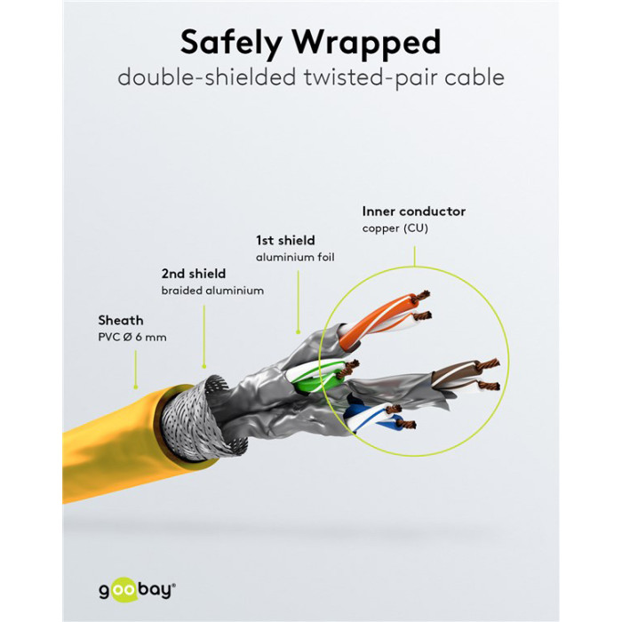 GOOBAY καλώδιο δικτύου 92453, CAT 6 S/FTP, copper, 250MHz, 0.15m, κίτρινο
