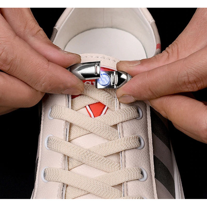 Ζευγάρι κορδόνια για παπούτσια από ελαστικό υλικό, για άνεση σε casual παπούτσια σας. Τα άκρα τους είναι από κομψό, μεταλλικό υλικό σε ασημί χρώμα που προσφέρουν ξεχωριστό στυλ στα παπούτσια σας. Επίσης, είναι μαγνητικά κάνοντας περιττό το δέσιμο των κορδονιών