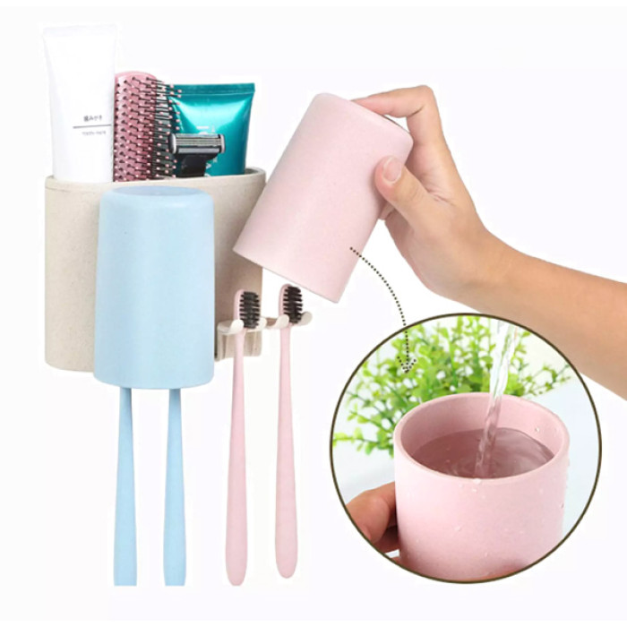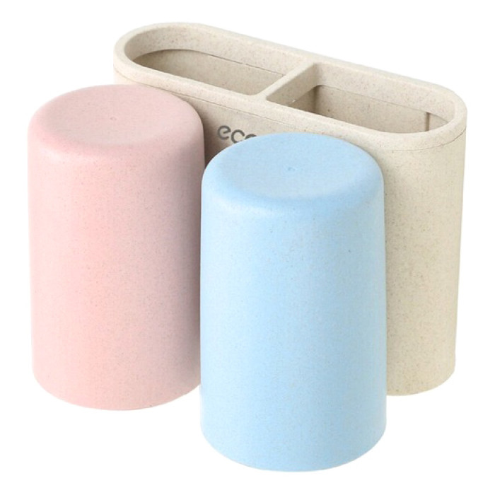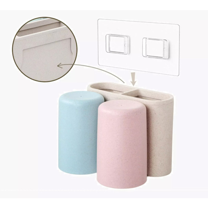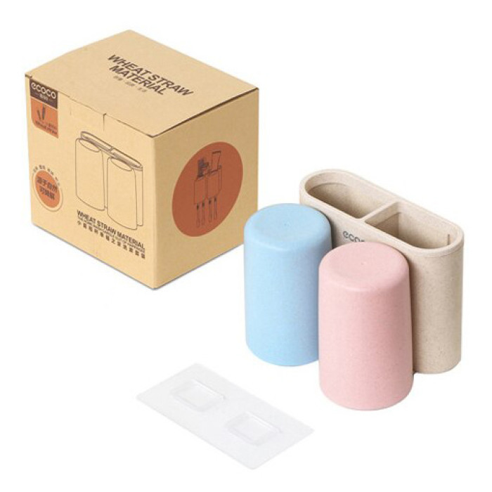 Βάση οδοντόβουρτσας με 2 ποτήρια της Ecoco και κομψή εμφάνιση, κατασκευασμένη από Eco-friendly υλικά. Τοποθετείται εύκολα στον τοίχο με αυτοκόλλητα τα οποία αποσπώνται από την βάση, διευκολύνοντας τον καθαρισμό της. Διαθέτει 2 ποτήρια και 2 θήκες όπου μπορούν να τοποθετηθούν οδοντόβουρτσες, οδοντόκρεμες ή αλλά αντικείμενα υγιεινής.
