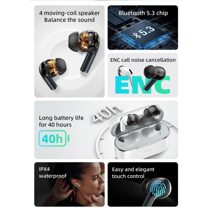 Τα true wireless earphones της Mibro προσφέρουν κορυφαία ποιότητα ήχου και άριστη εφαρμογή στο αυτί. Είναι συμβατά με tablets, smartphones και άλλες συσκευές που διαθέτουν Bluetooth.