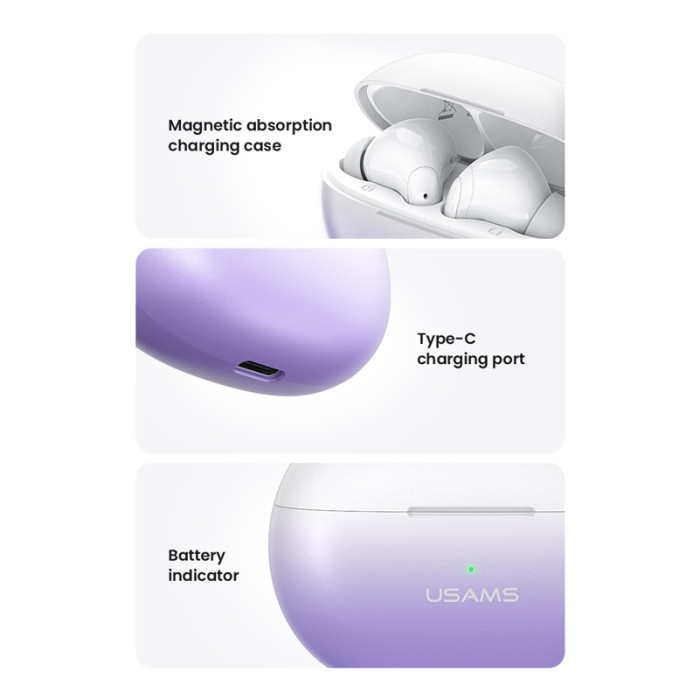 USAMS earphones με θήκη φόρτισης US-XD19, TWS, ENC, Φ13mm, μαύρα