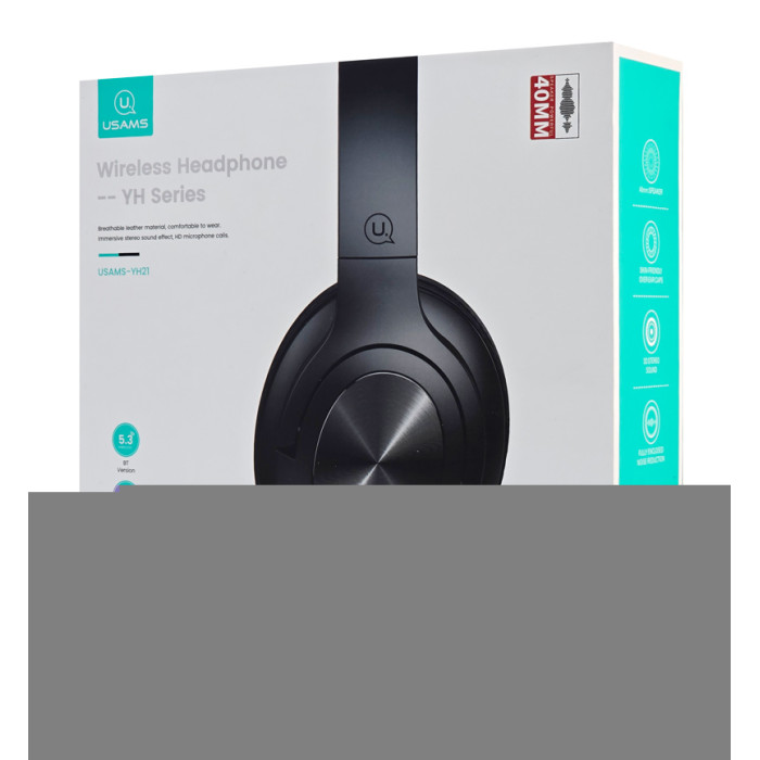 USAMS headphones YH21, ασύρματα & ενσύρματα, Φ40mm, 500mAh, μαύρα
