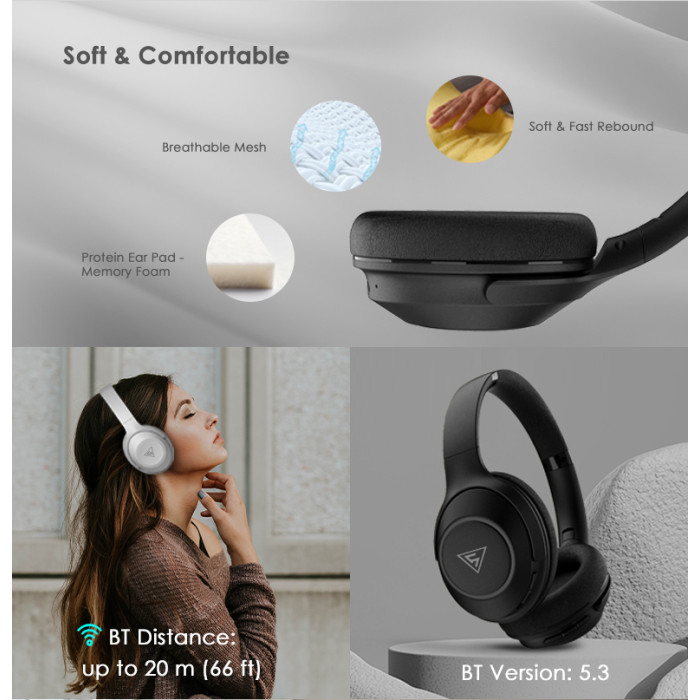 Χάρη στον σχεδιασμό τους, τα μαλακά μαξιλαράκια των ακουστικών και το μαλακό pad στο στεφάνι, εφαρμόζουν άψογα και προσφέρουν άνεση ακόμη και μετά από πολλές ώρες χρήσης.