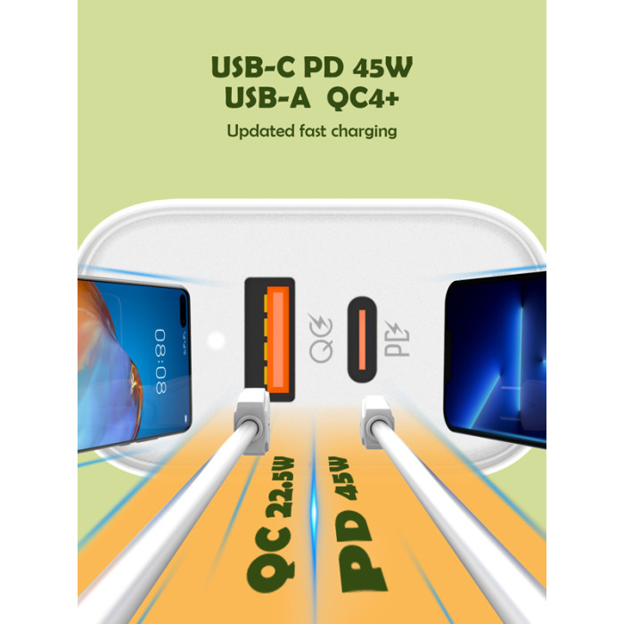 -2x θύρες εξόδου, USB & USB-C, με μέγιστη απόδοση 45W