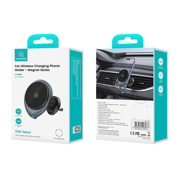 USAMS ασύρματος φορτιστής & βάση αυτοκινήτου US-CD222, 15W, μαύρο