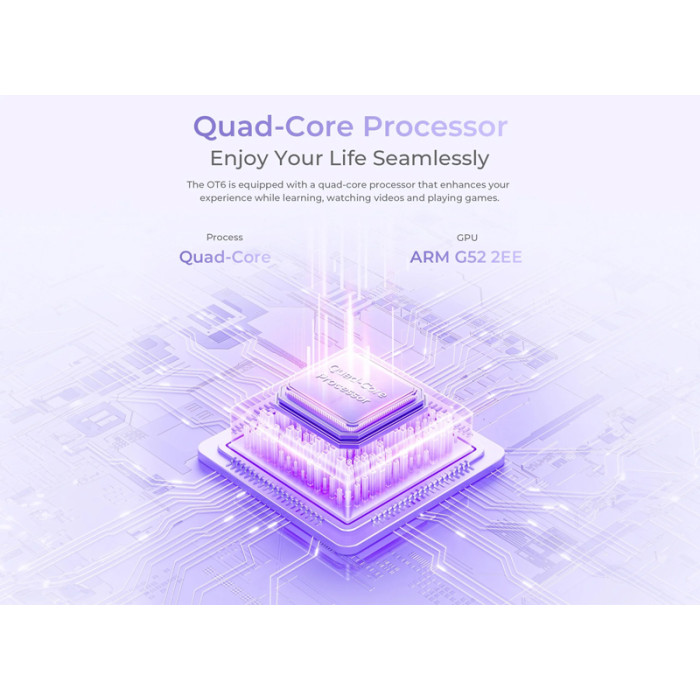 Εξοπλισμένο με επεξεργαστή 4 πυρήνων RK3562 και γραφικά ARM G52 2EE, το OT6 προσφέρει την ισχύ που χρειάζεστε για απρόσκοπτη περιήγηση στο διαδίκτυο, παιχνίδια, πολυμέσα και πολλά άλλα.