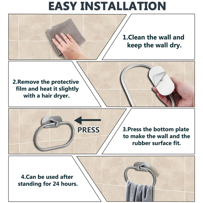Κρεμάστρα μπάνιου και κουζίνας ιδανική για τοποθέτηση πετσετών. Το σώμα της κρεμάστρας μπορεί να μετακινηθεί πλήρως προς τα επάνω και κάτω. Τοποθετείται σε οποιαδήποτε επίπεδη επιφάνεια του τοίχου με αυτοκόλλητο.